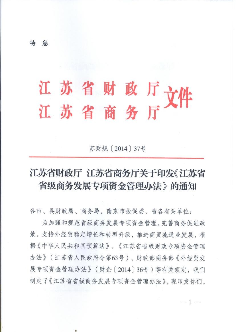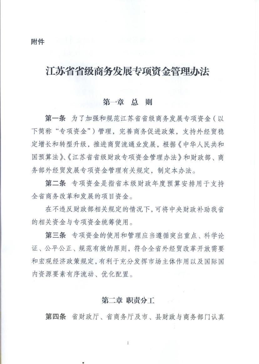 江苏省财政厅 星空国际彩票平台app关于印发《江苏省省级商务发展专项资金管理办法》的通知