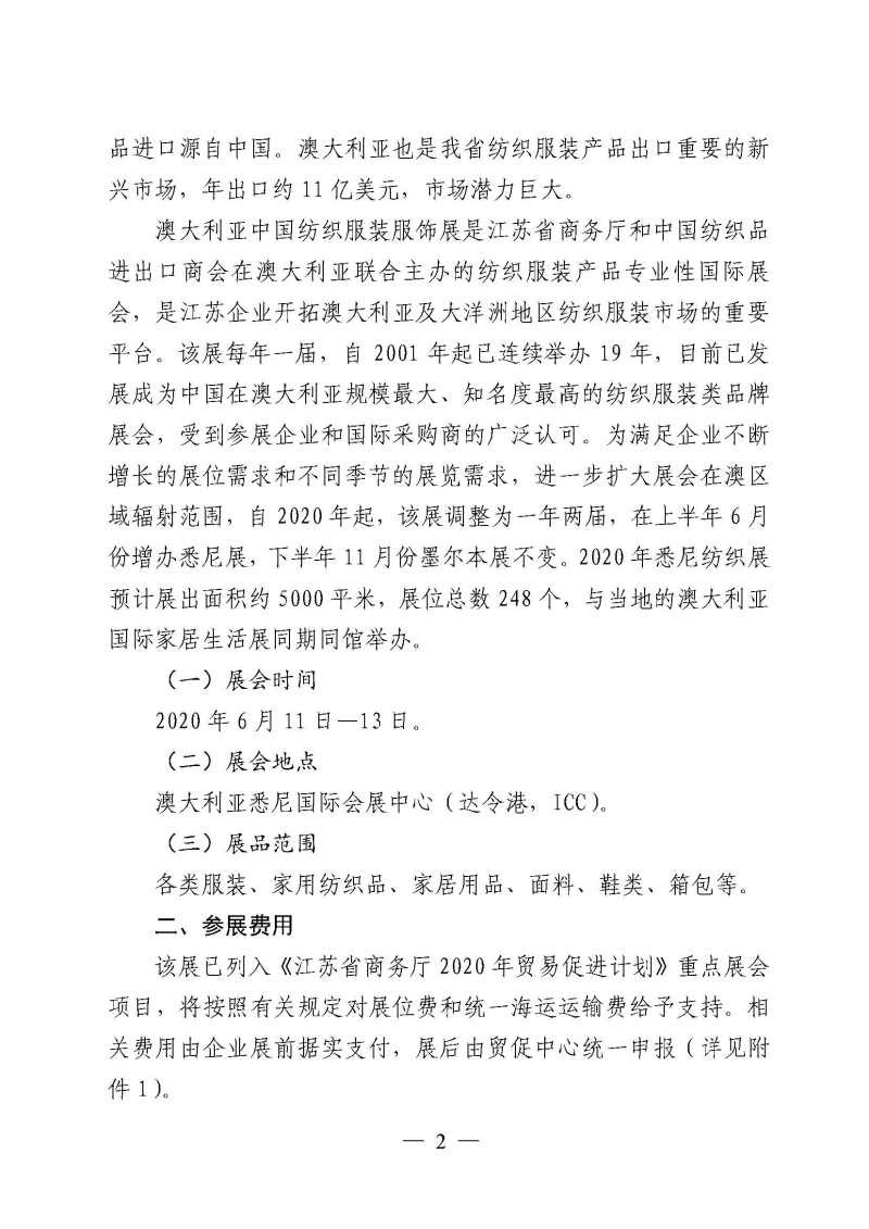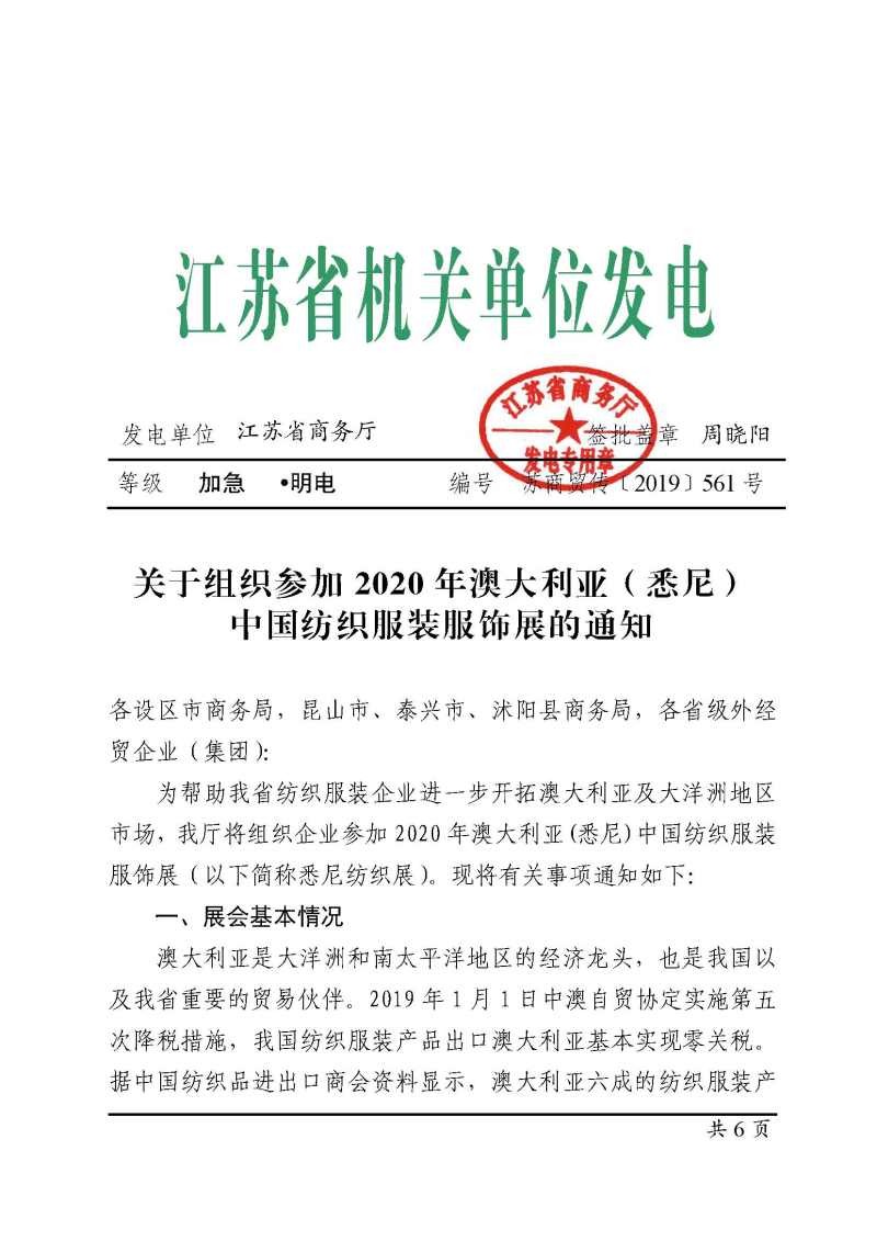关于组织参加2020年澳大利亚(悉尼)中国纺织服装服饰展的通知