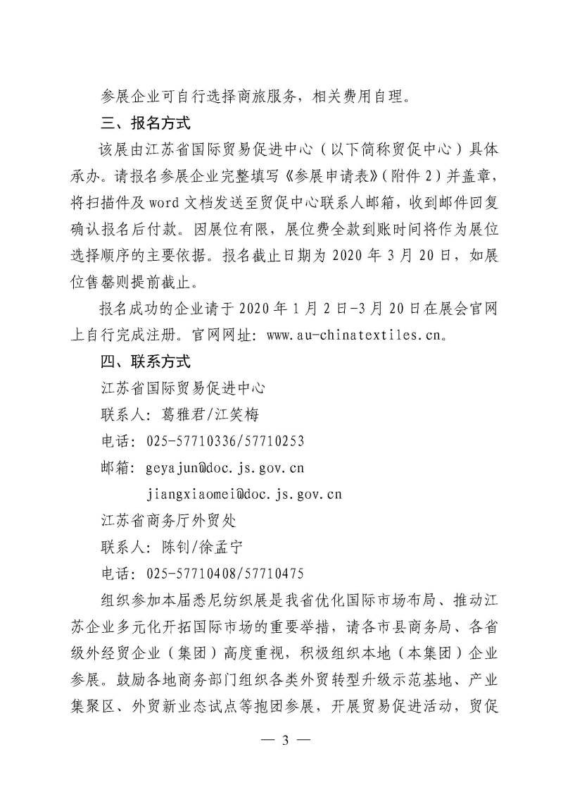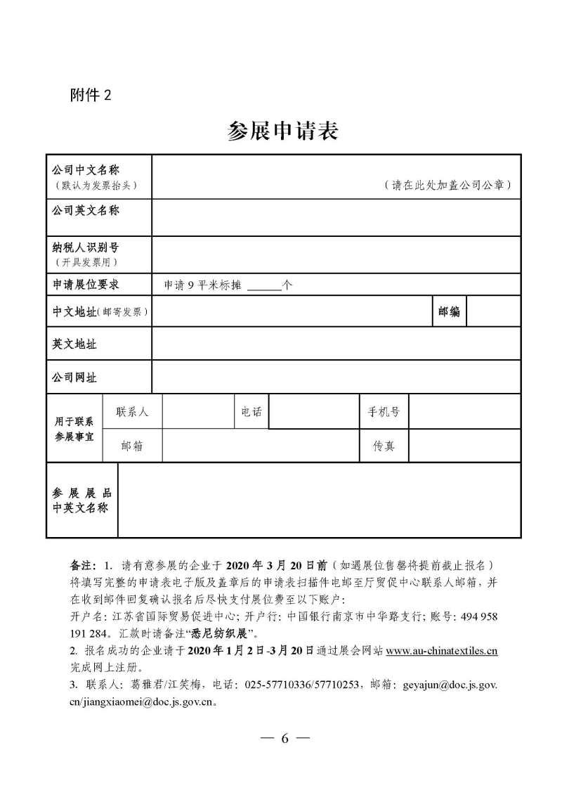 内容概述 | 关于组织参加2020年澳大利亚(悉尼)中国纺织服装服饰展的通知.pdf附件2:参展申请表.doc | ||