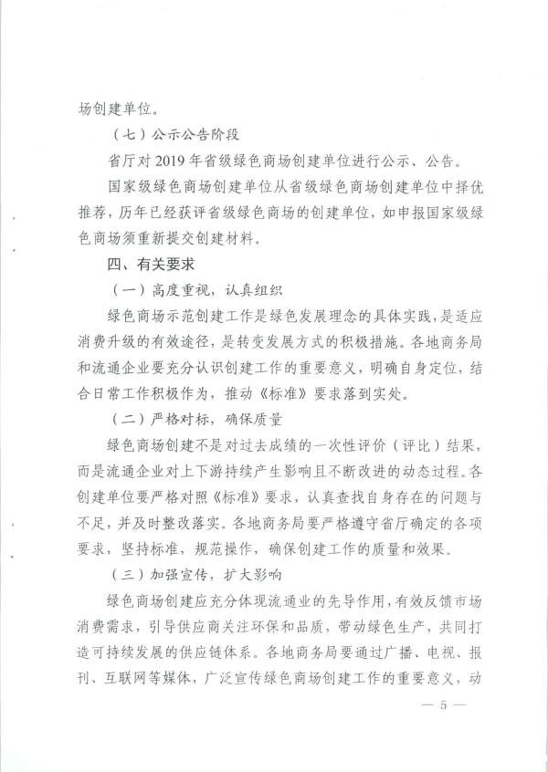 省商务厅关于开展2019年绿色商场创建工作的通知
