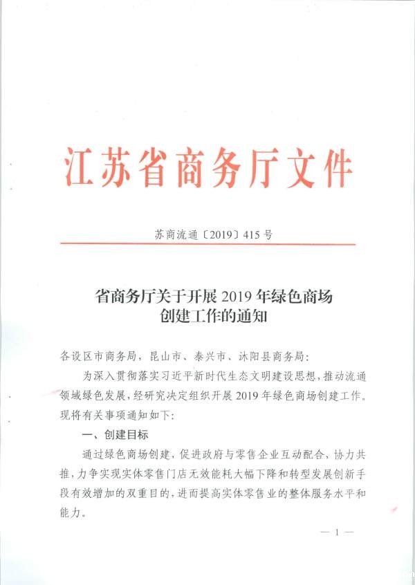 信息名称 | 省商务厅关于开展2019年绿色商场创建工作的通知 | ||