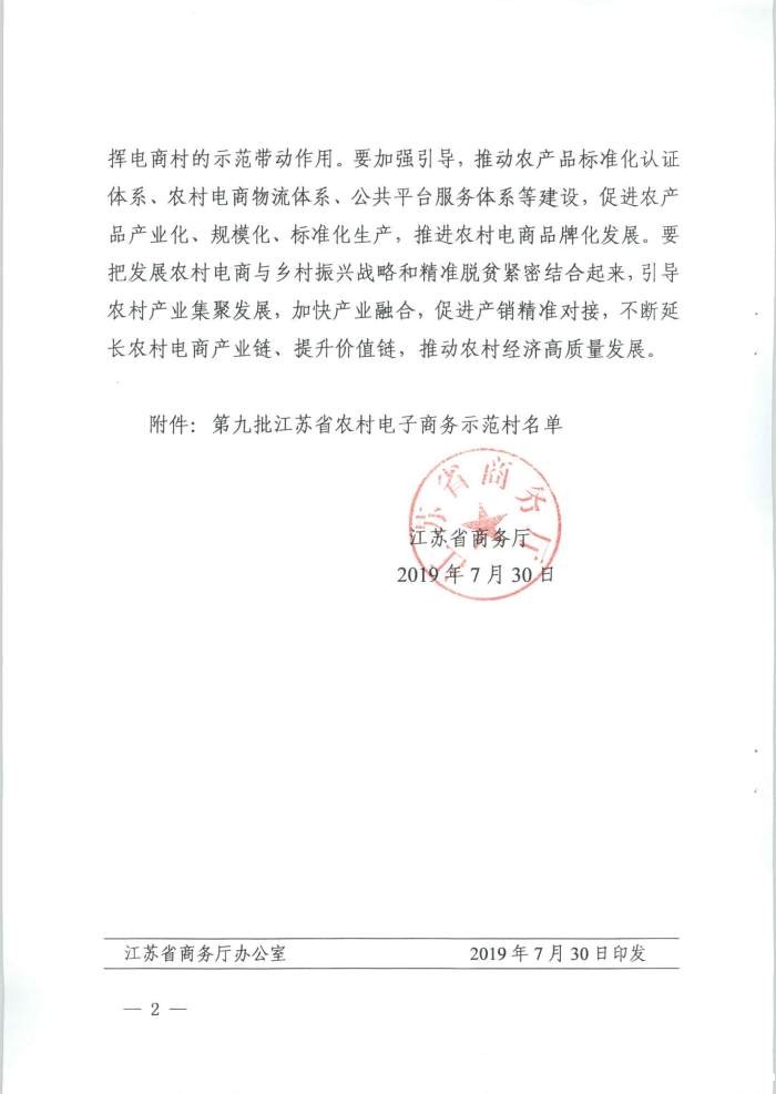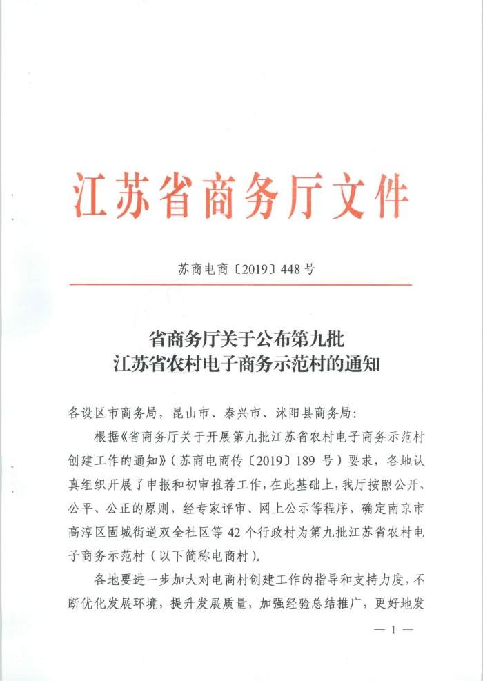 文号 | 苏商电商〔2019〕448号 | 关键字 | 江苏省农村电子商务示范村 |