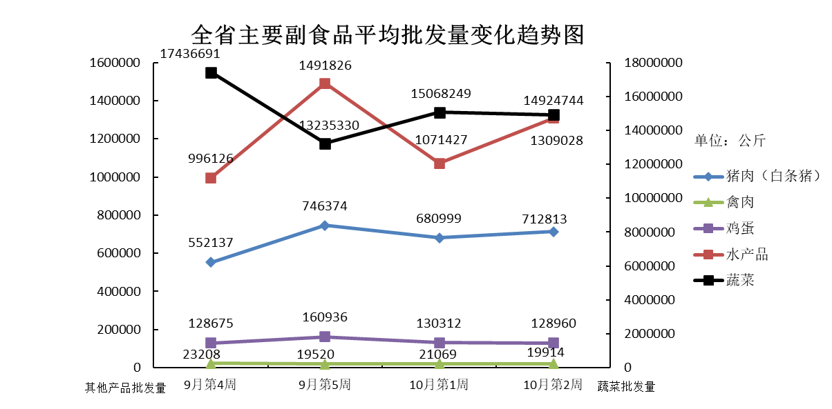 根据全省生活必需品监测系统, 本周数据报告日(10月15日):