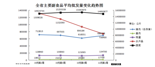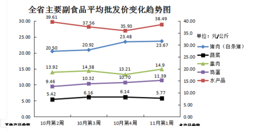 根据全省生活必需品监测系统, 本周数据报告日(11月5日):