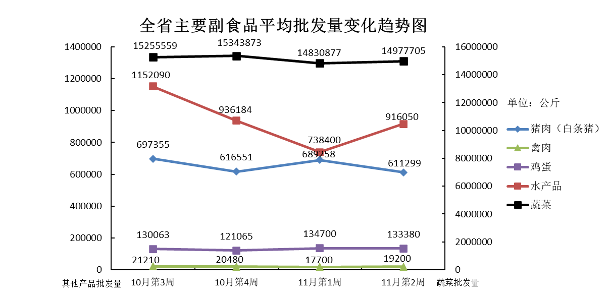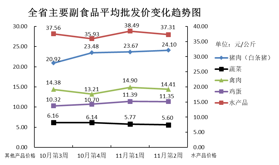 根据全省生活必需品监测系统, 本周数据报告日(11月12日):