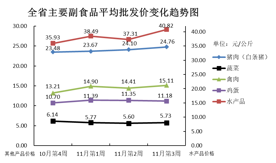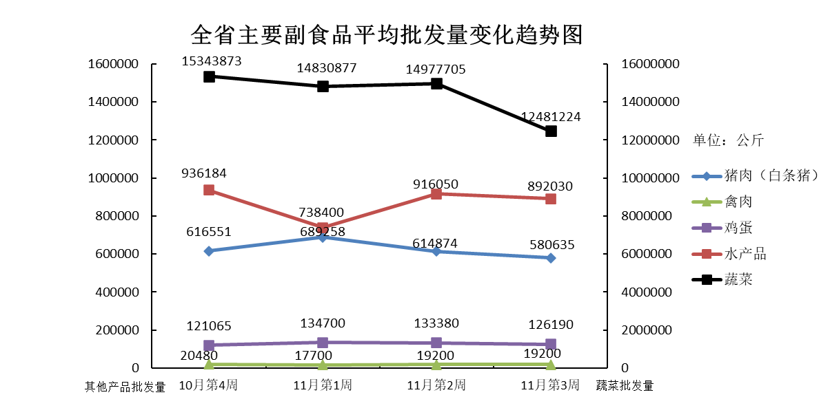 根据全省生活必需品监测系统, 本周数据报告日(11月19日):