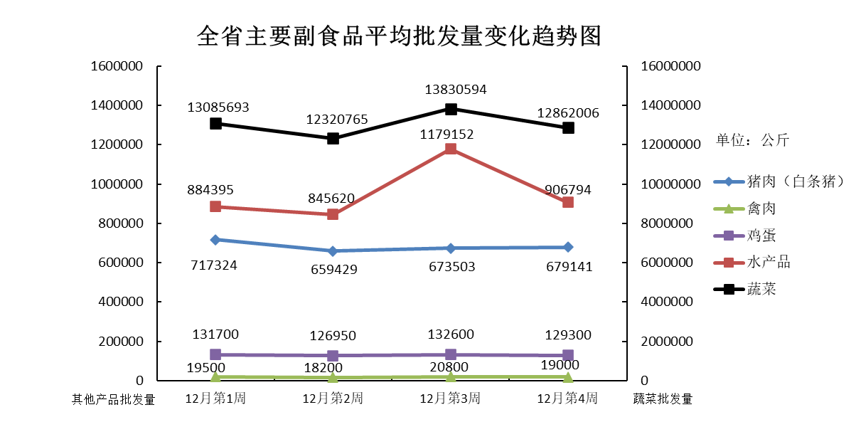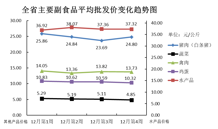 根据全省生活必需品监测系统, 本周数据报告日(12月24日):