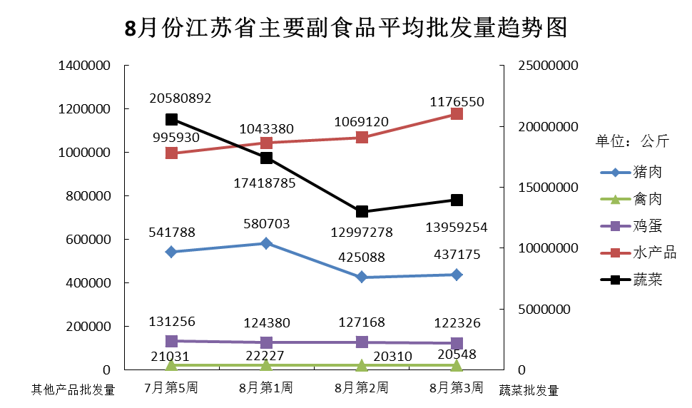 根据全省生活必需品监测系统, 本周数据报告日(8月20日):