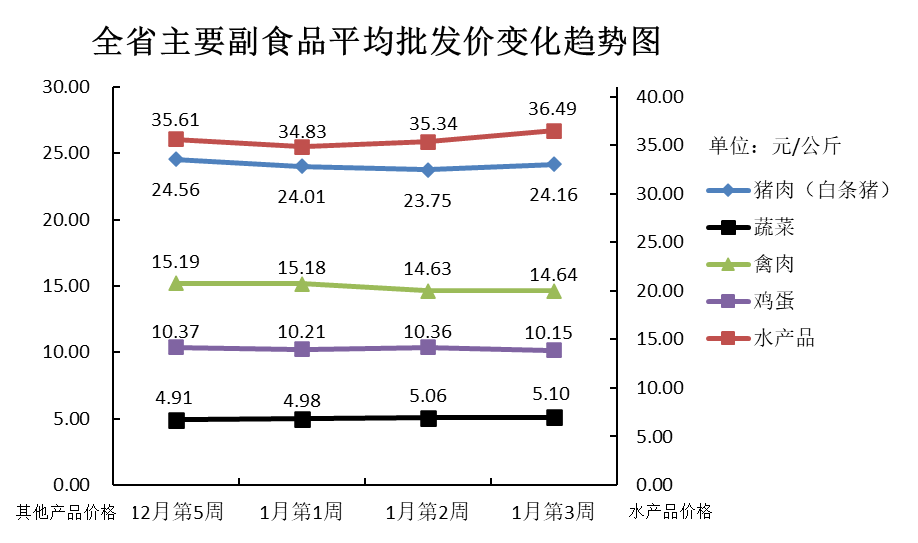 根据全省生活必需品监测系统, 本周数据报告日(1月21日):