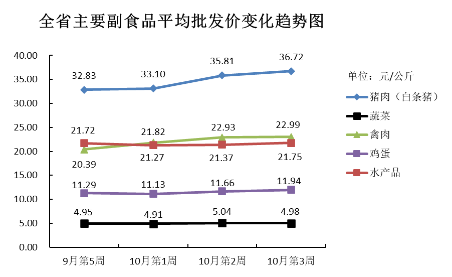 根据全省生活必需品监测系统, 本周数据报告日(10月21日):