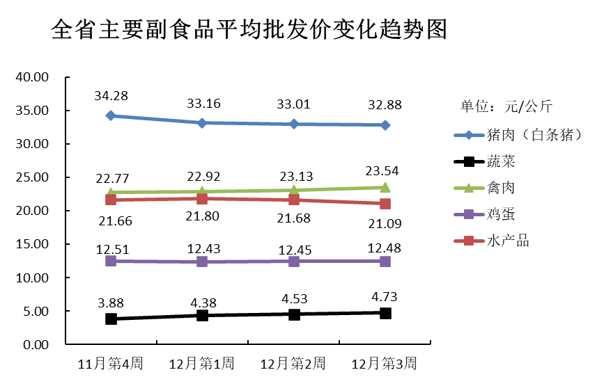 根据全省生活必需品监测系统, 本周数据报告日(12月16日):