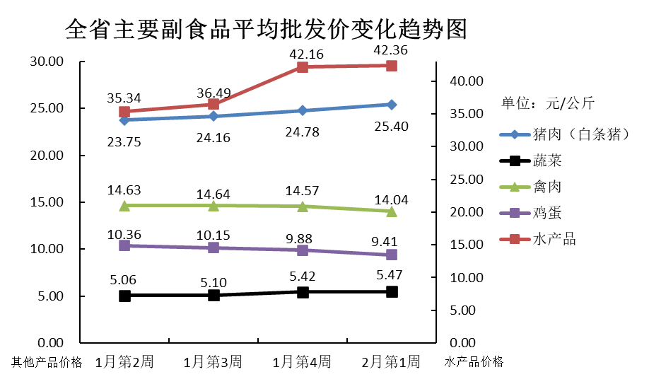 根据全省生活必需品监测系统, 本周数据报告日(2月4日):