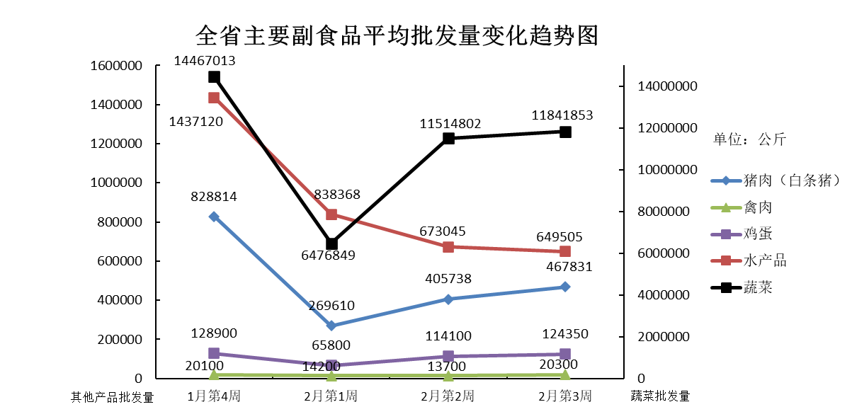 根据全省生活必需品监测系统, 本周数据报告日(2月18日):