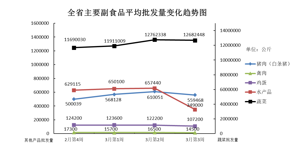 根据全省生活必需品监测系统, 本周数据报告日(3月18日):
