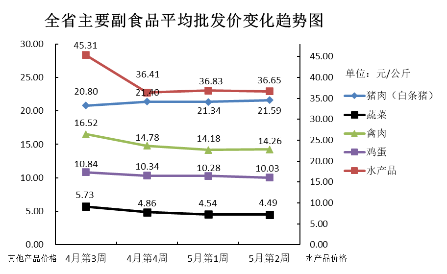 根据全省生活必需品监测系统, 本周数据报告日(5月13日):
