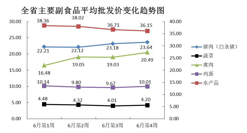 根据全省生活必需品监测系统, 本周数据报告日(6月24日):