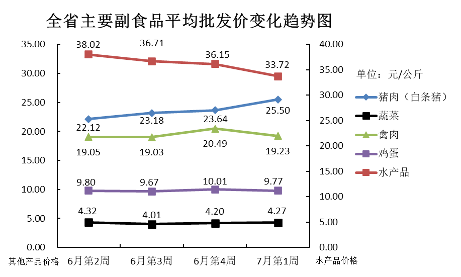 根据全省生活必需品监测系统, 本周数据报告日(7月1日):