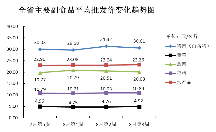 根据全省生活必需品监测系统, 本周数据报告日(8月19日):