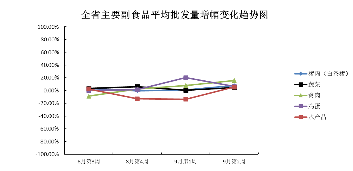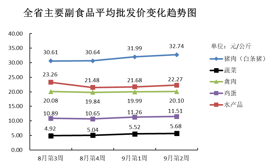 根据全省生活必需品监测系统, 本周数据报告日(9月9日):