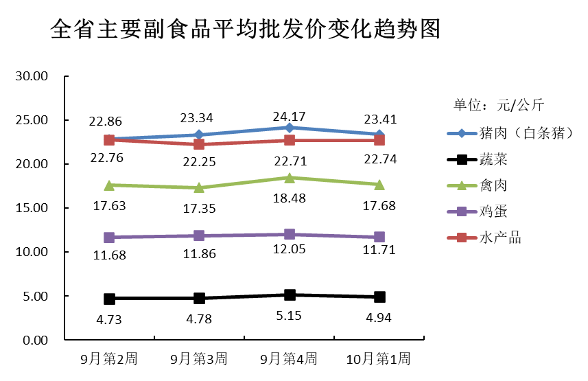 根据全省生活必需品监测系统, 本周数据报告日(10月6日):