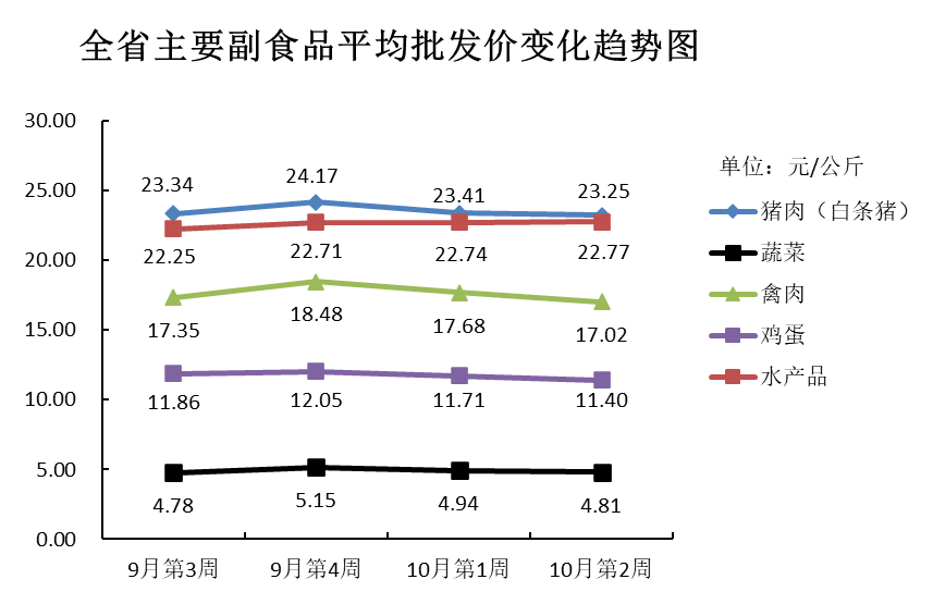 根据全省生活必需品监测系统, 本周数据报告日(10月13日):