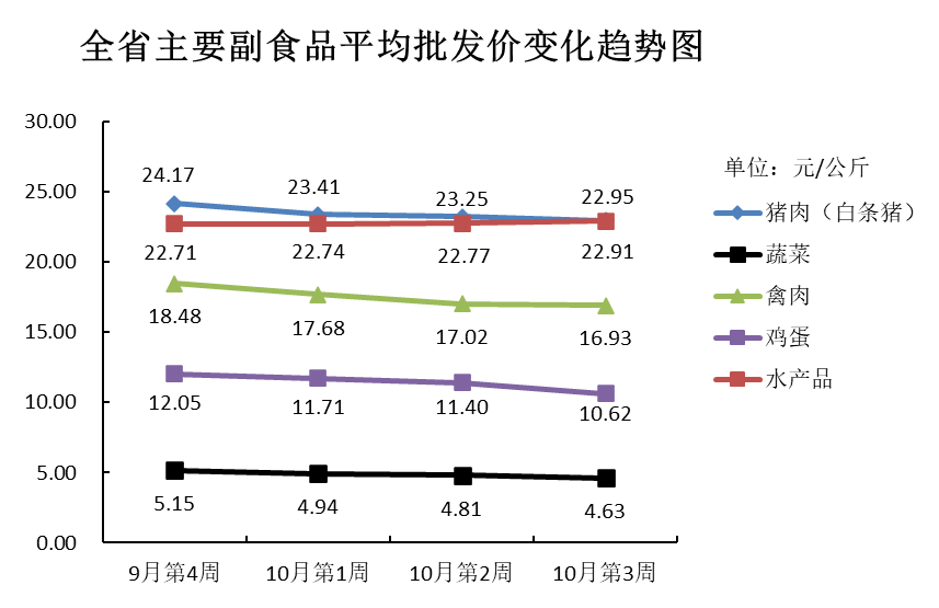 根据全省生活必需品监测系统, 本周数据报告日(10月20日):