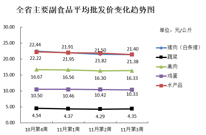 根据全省生活必需品监测系统, 本周数据报告日(11月17日):