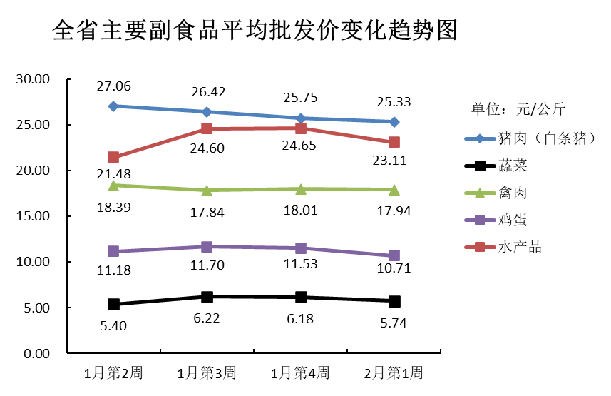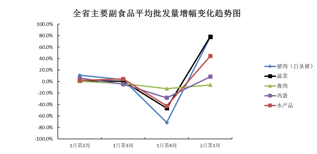 根据全省生活必需品监测系统, 本周数据报告日(2月3日):