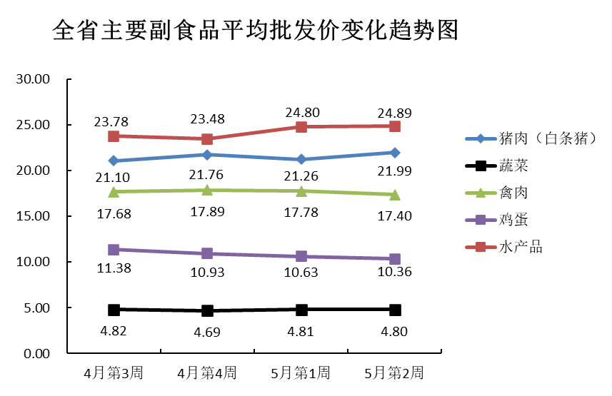 根据全省生活必需品监测系统, 本周数据报告日(5月12日):