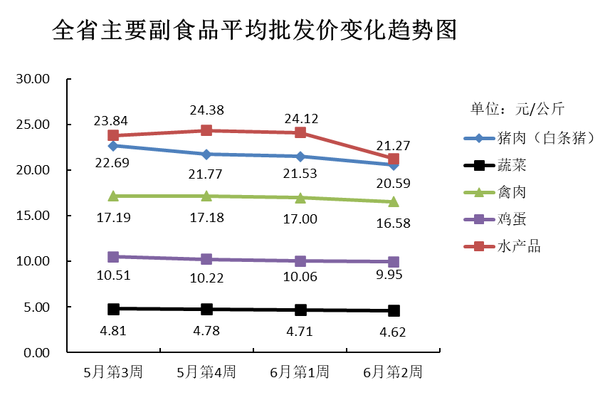 根据全省生活必需品监测系统, 本周数据报告日(6月9日):