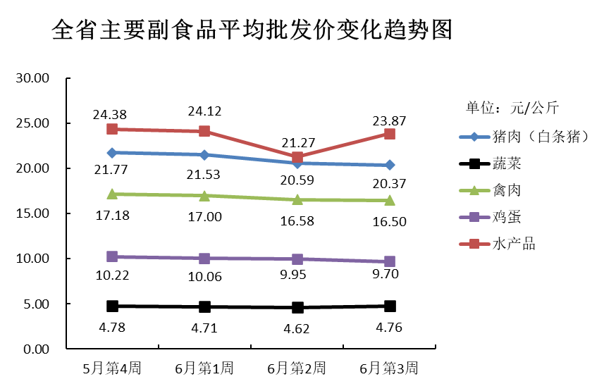 根据全省生活必需品监测系统, 本周数据报告日(6月16日):
