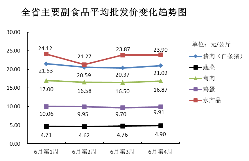 根据全省生活必需品监测系统, 本周数据报告日(6月23日):