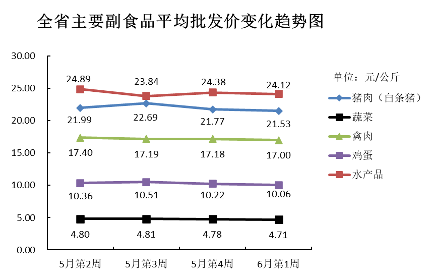 根据全省生活必需品监测系统, 本周数据报告日(6月2日):