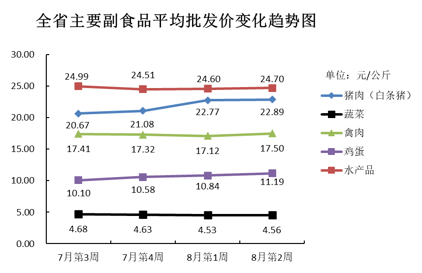 根据全省生活必需品监测系统, 本周数据报告日(8月11日):