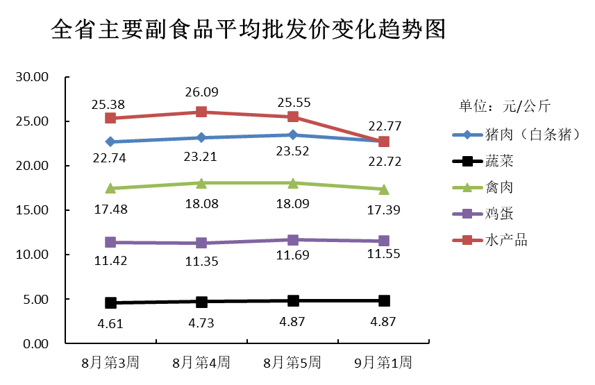 根据全省生活必需品监测系统, 本周数据报告日(9月8日):
