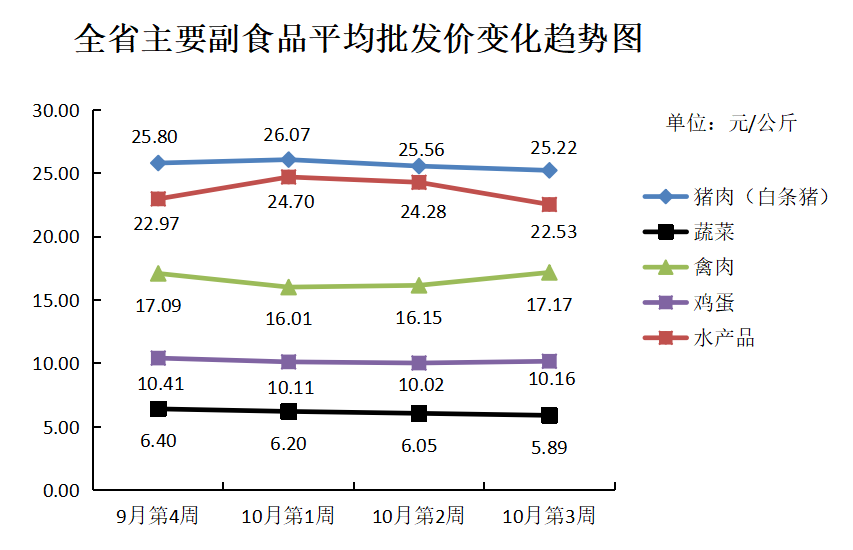 根据全省生活必需品监测系统, 本周数据报告日(10月18日):