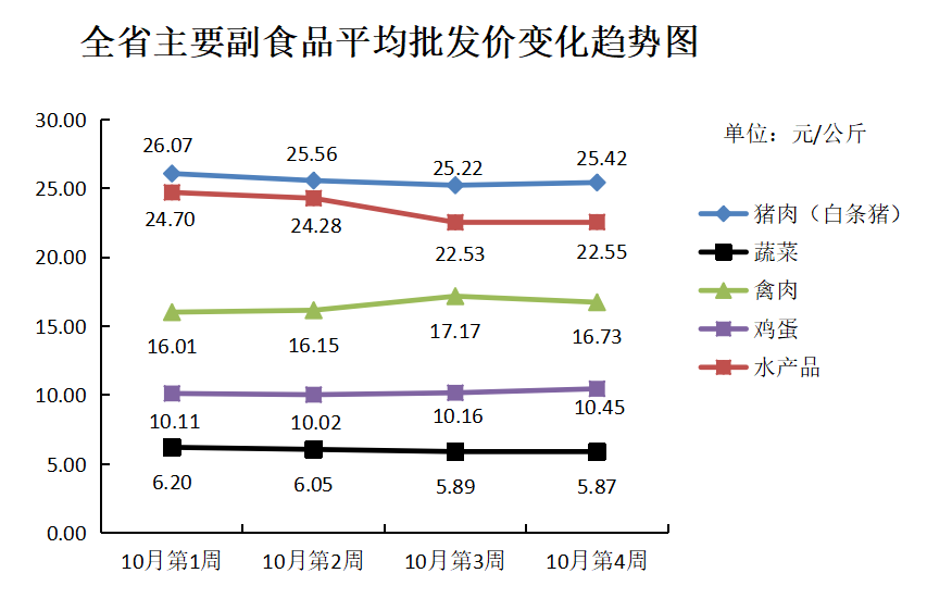根据全省生活必需品监测系统, 本周数据报告日(10月25日):