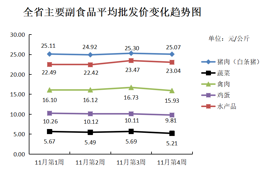 根据全省生活必需品监测系统, 本周数据报告日(11月22日):