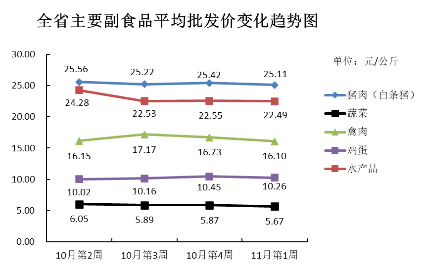 根据全省生活必需品监测系统, 本周数据报告日(11月1日):