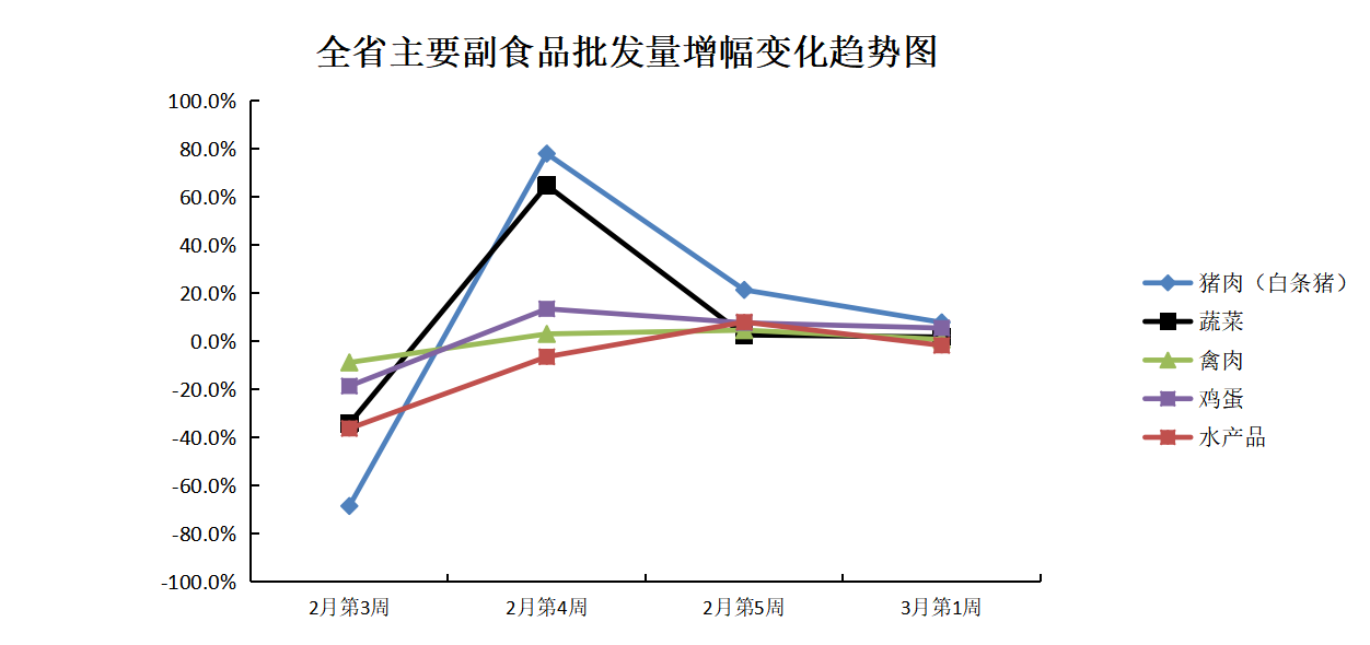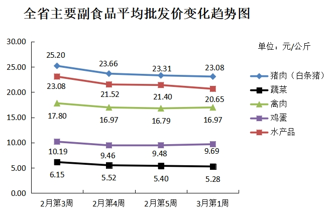 根据全省生活必需品监测系统, 本周数据报告日(3月8日):