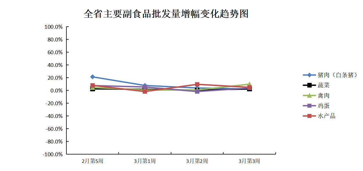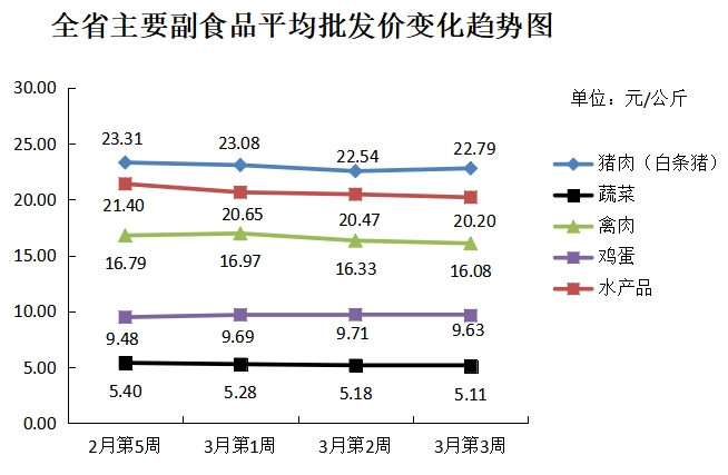 根据全省生活必需品监测系统, 本周数据报告日(3月22日):