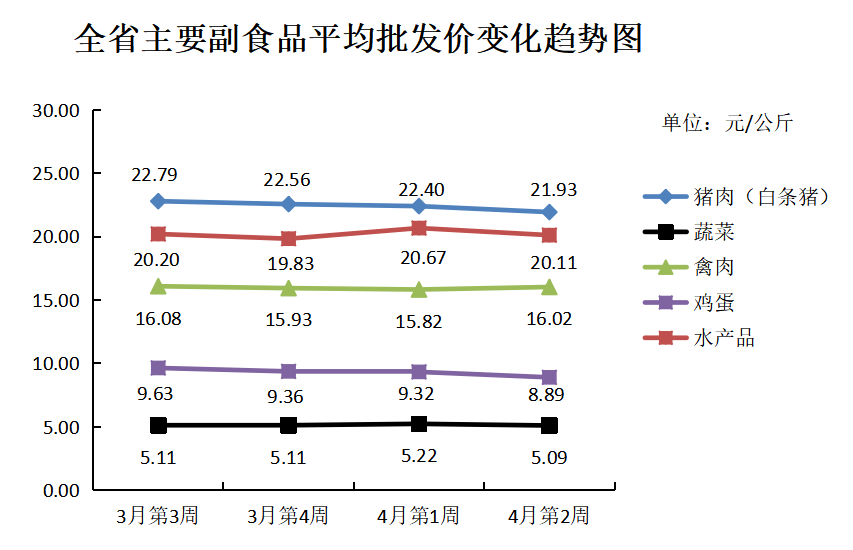 根据全省生活必需品监测系统, 本周数据报告日(4月12日):