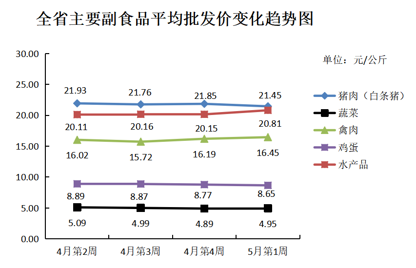 根据全省生活必需品监测系统, 本周数据报告日(5月3日):