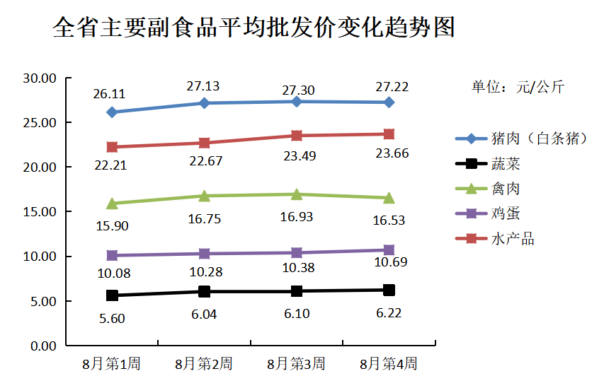 根据全省生活必需品监测系统, 本周数据报告日(8月23日):