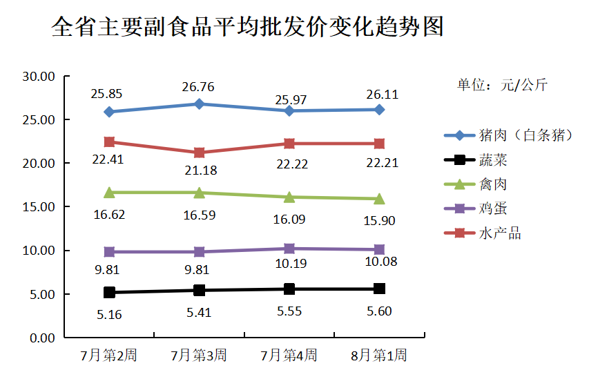 根据全省生活必需品监测系统, 本周数据报告日(8月2日):