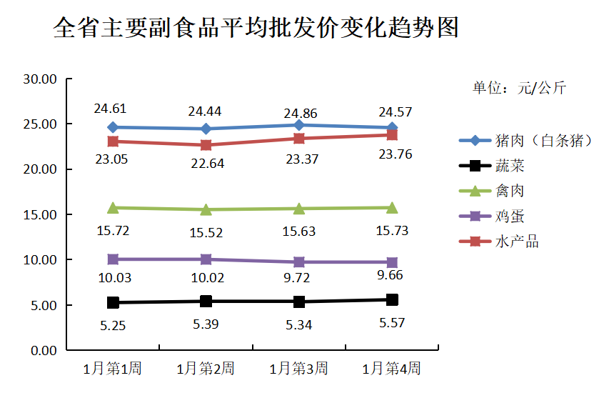 根据全省生活必需品监测系统, 本周数据报告日(1月24日):