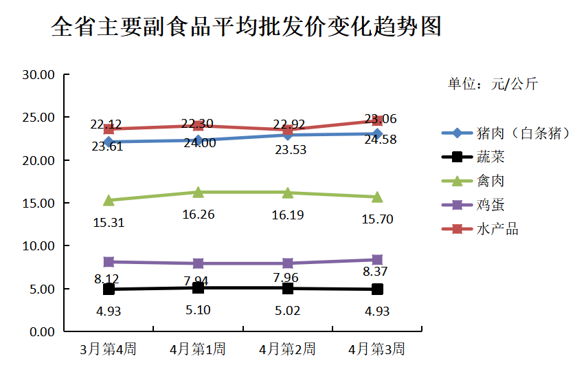 根据全省生活必需品监测系统, 本周数据报告日(4月18日):