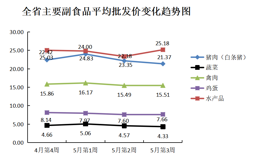 根据全省生活必需品监测系统,本周数据报告日(5月16日):