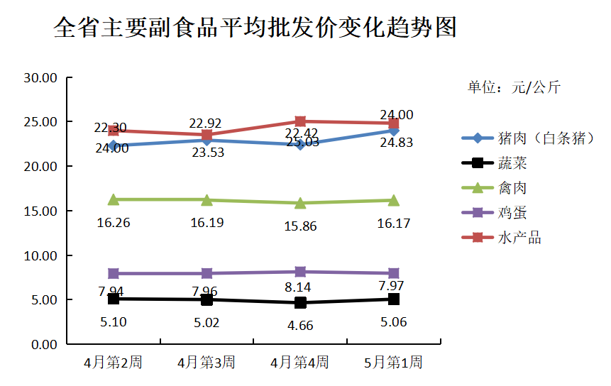 根据全省生活必需品监测系统, 本周数据报告日(5月2日):