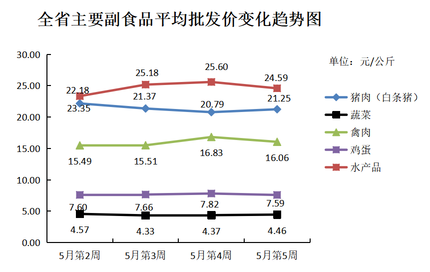 根据全省生活必需品监测系统,本周数据报告日(5月30日):